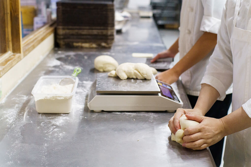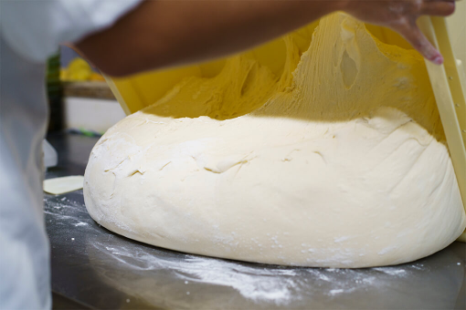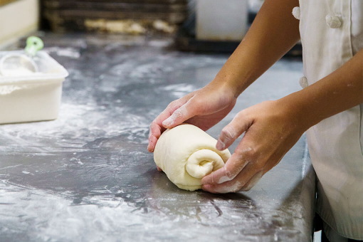 季節や湿度に左右されることなく、それぞれのパンのおいしさや特徴が活きるパンを作り続けていけるよう、加える水の温度、生地の捏ね上げ時間や温度を定め、それをきちんと守りクオリティを保った生地づくりを徹底して行なっています。
