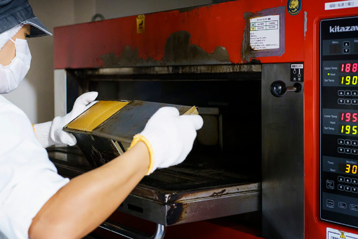 焼き上げてすぐに包装、冷凍することでこれらが防げ、ご自宅でリベイクすることで焼き立てに近いおいしいパンをお召し上がりいただけます。